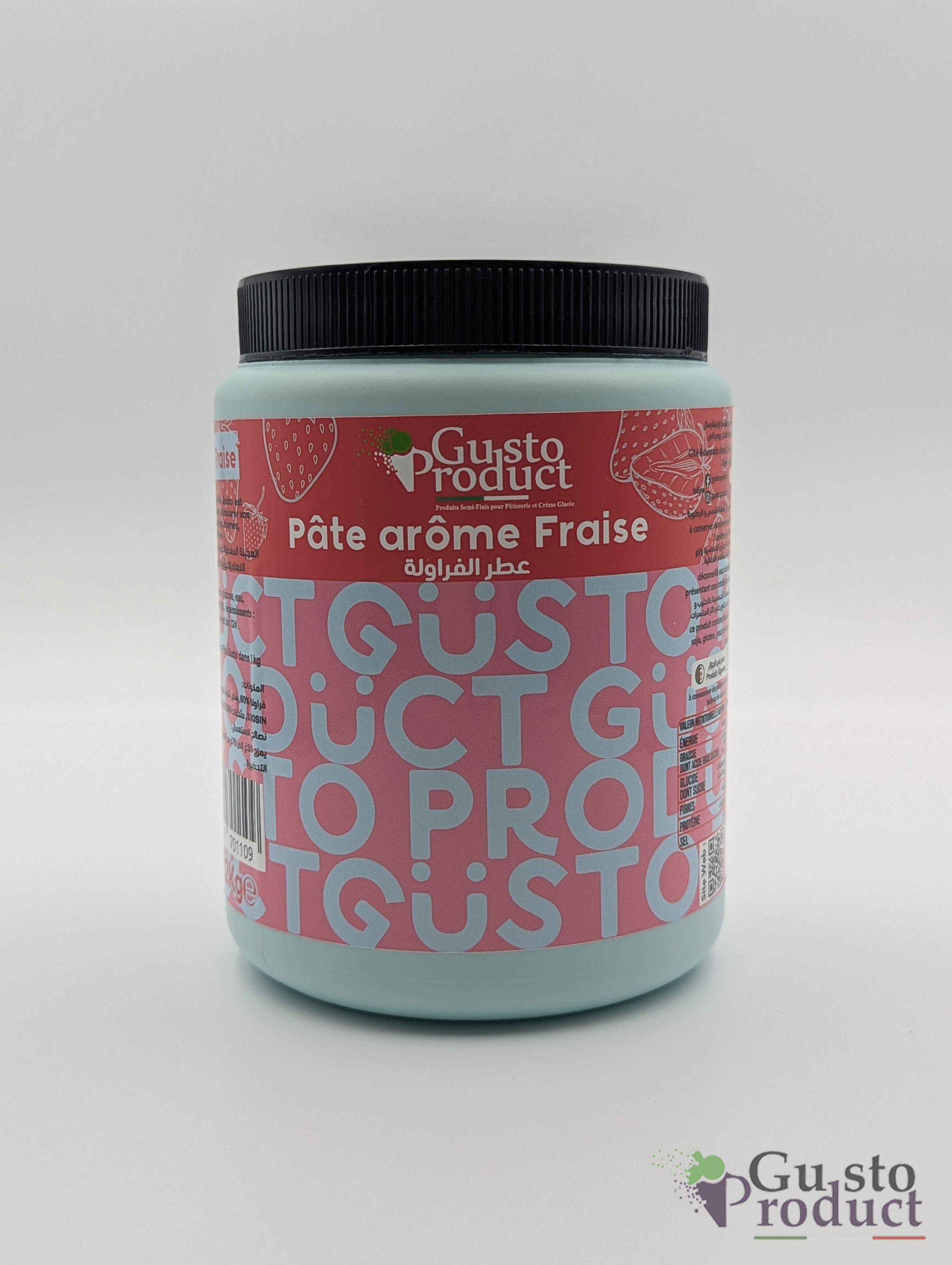 Apportez une touche fruitée et gourmande à vos créations avec la pâte arôme fraise de Gusto Product. Son goût intense et sa couleur appétissante en font l’ingrédient idéal pour parfumer et colorer vos pâtisseries, glaces, crèmes, mousses ou confiseries.Facile à travailler, elle garantit un rendu homogène et savoureux, aussi bien pour les professionnels que pour les passionnés de pâtisserie.Caractéristiques :Arôme naturel et intense de fraiseTexture lisse et concentréeIdéale pour pâtisserie, viennoiserie, glaces et dessertsConditionnée par Gusto Product en 1.2 kgAvec la Pâte Arôme Fraise – Gusto Product, sublimez vos recettes et offrez à vos clients une explosion de saveurs fruitées.