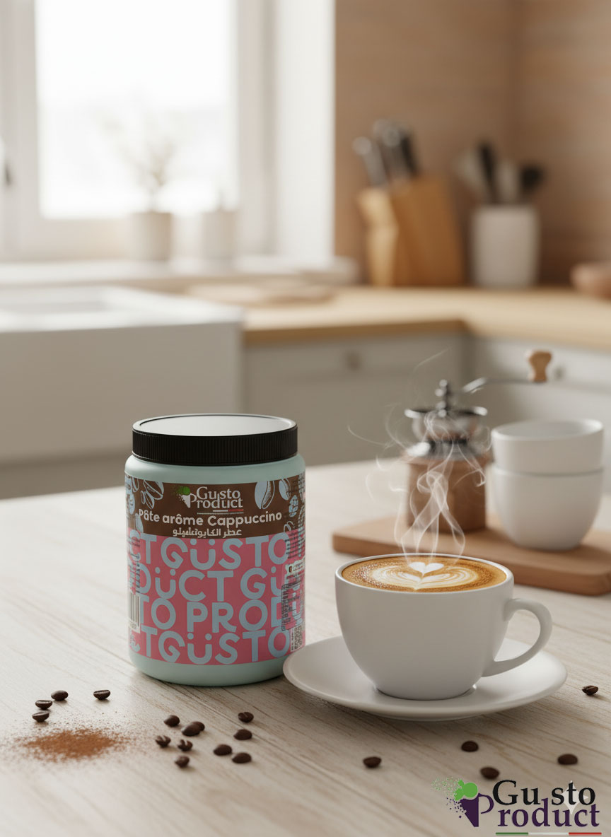 Savourez l’intensité et la douceur de la pâte arôme Cappuccino de Gusto Product, qui associe harmonieusement la richesse du café et la rondeur du lait mousseux. Une saveur raffinée qui séduira les amateurs de café gourmands.