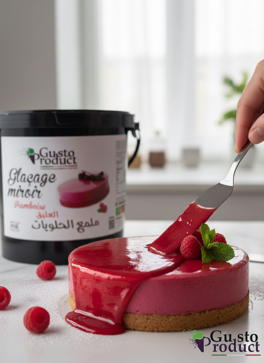 Apportez une touche d’élégance et de gourmandise à vos créations pâtissières avec notre Glaçage Miroir Framboise. Sa texture lisse et brillante assure un rendu professionnel digne des plus grands chefs. Élaboré à partir d’ingrédients de qualité, il séduit par sa couleur rouge intense et son goût fruité authentique de framboise, idéal pour sublimer entremets, bavarois, cheesecakes, bûches et autres desserts raffinés.